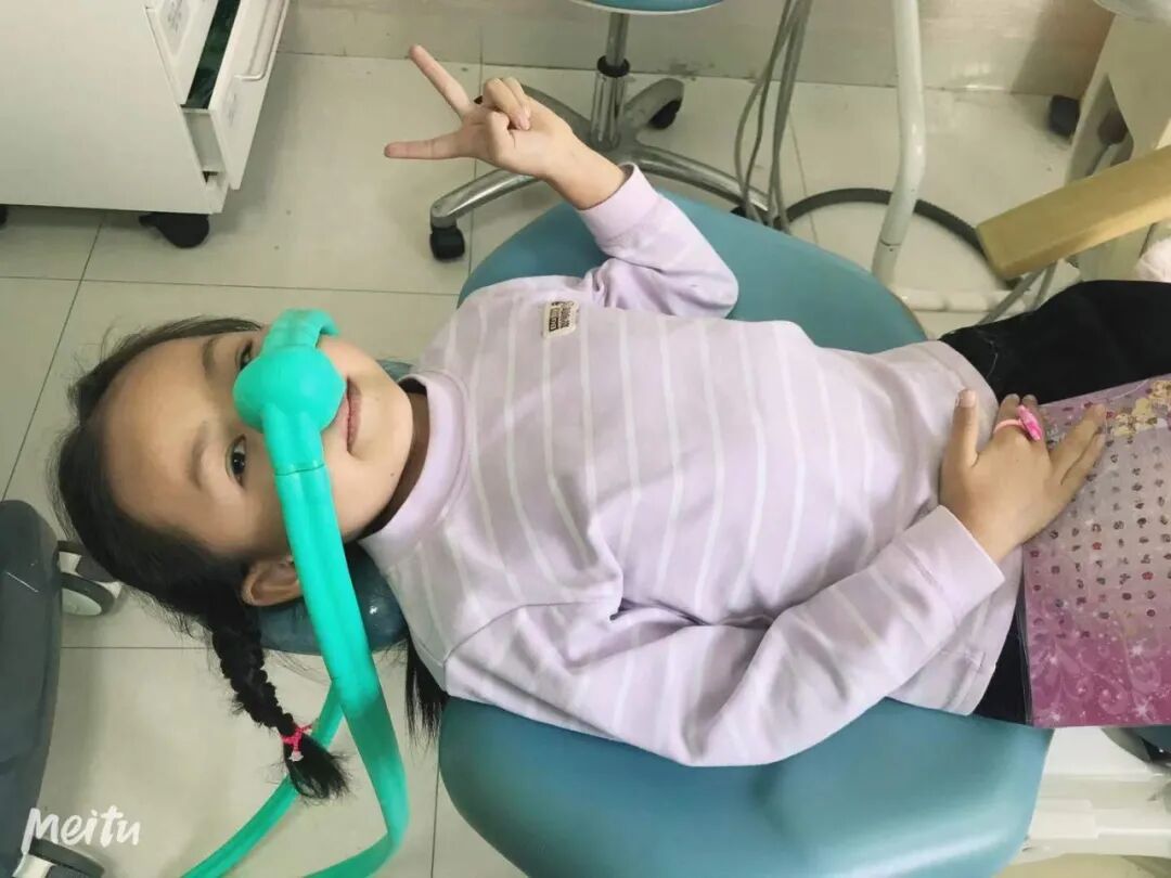 补牙之前抱着妈妈的腿要哭,就是不要补牙,完全不配合,经过康乐专业儿牙医生的引导和笑气镇定技术,补牙过程顺顺利利。